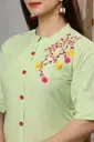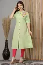 Women Embroidered Cotton Blend A-line Kurta (Light Green)